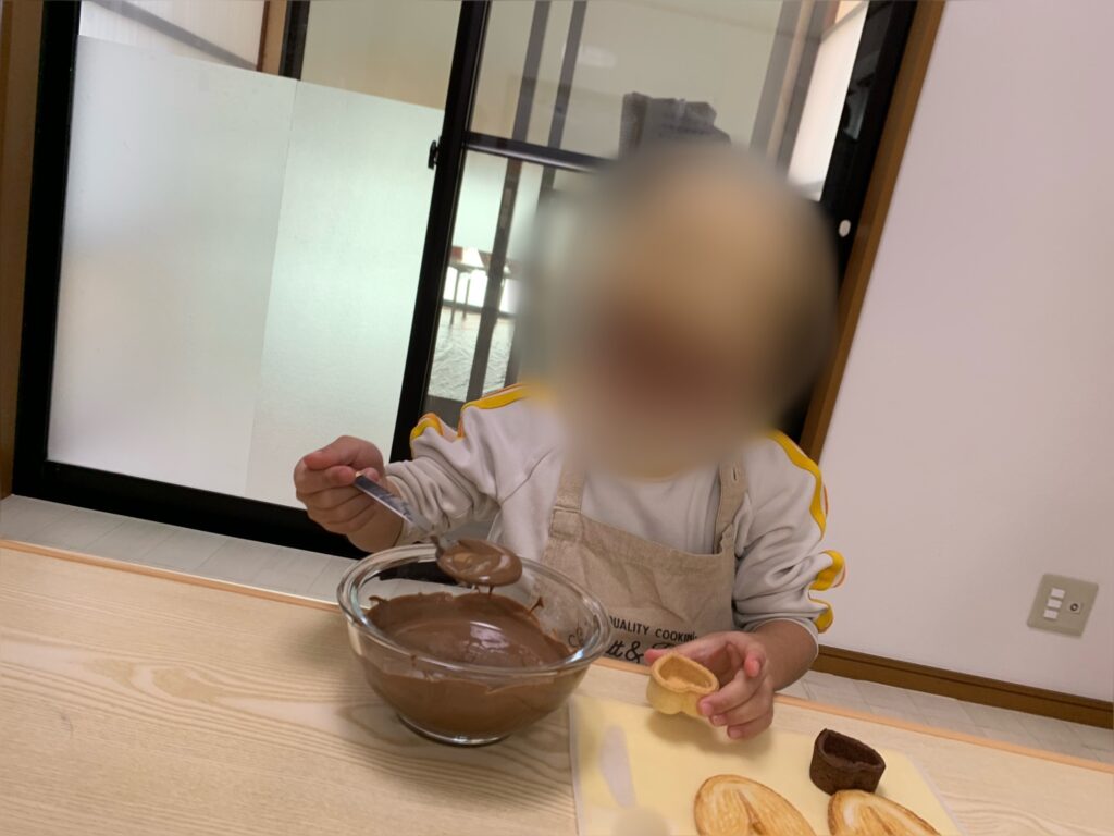 溶かしたチョコを型に入れる作業では、皆さんとても上手にチョコを流しいれていました