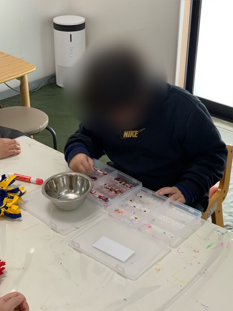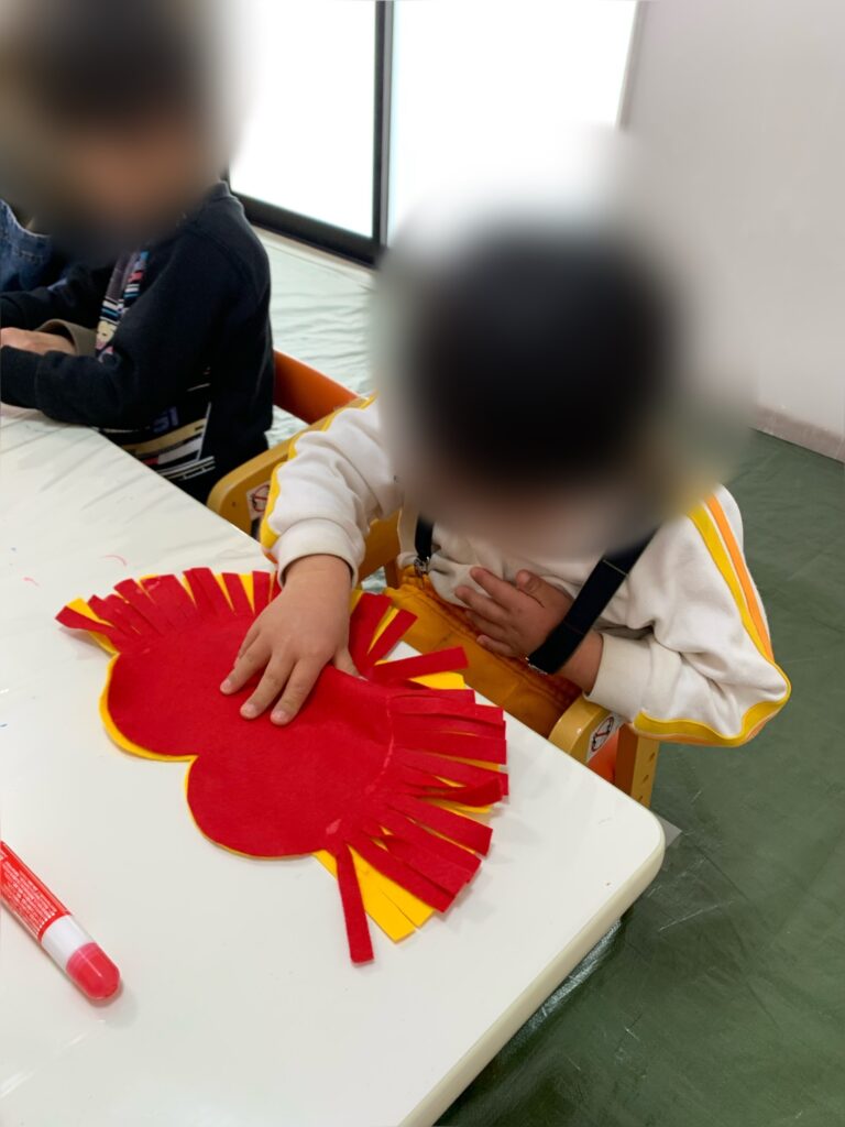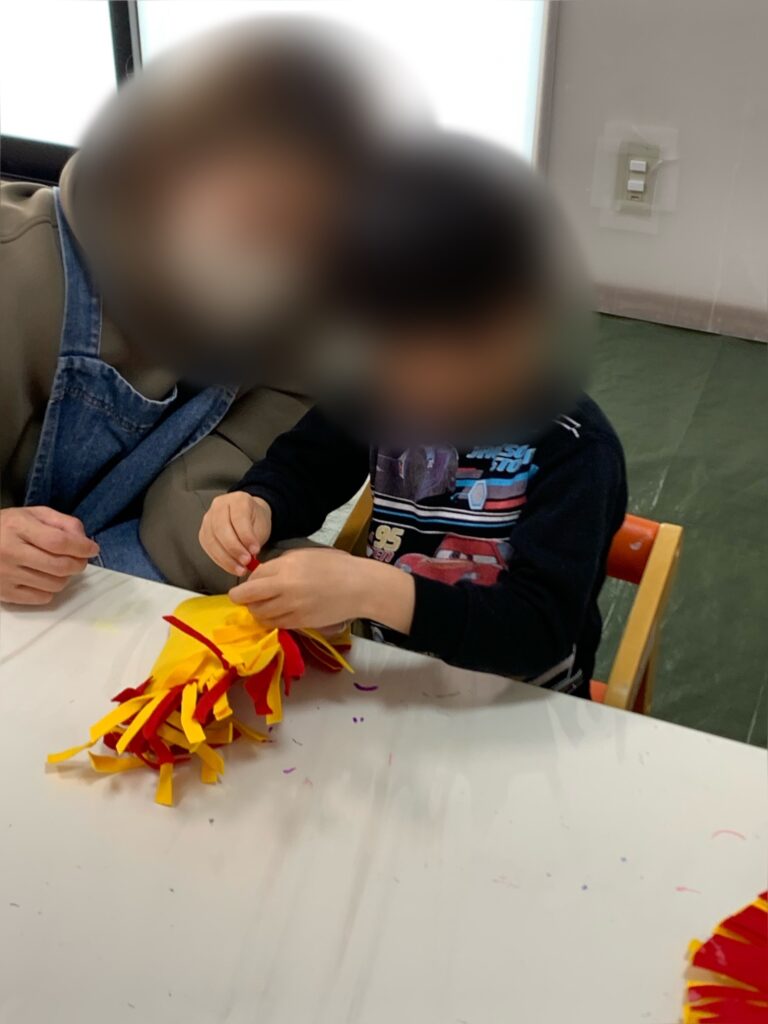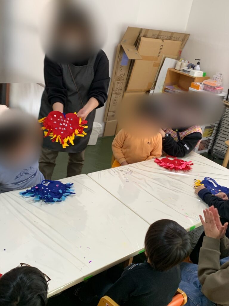 この日は「結ぶ」動作を主として作られるハートバッグ制作にチャレンジしました( ·ㅂ·)و ̑̑
