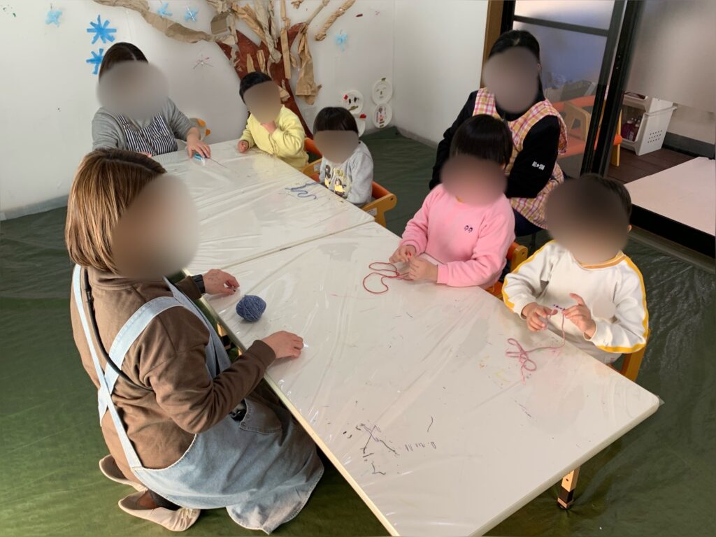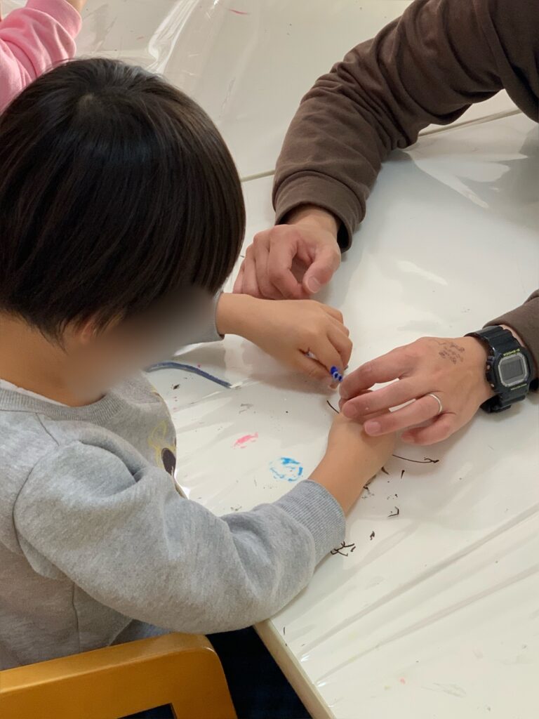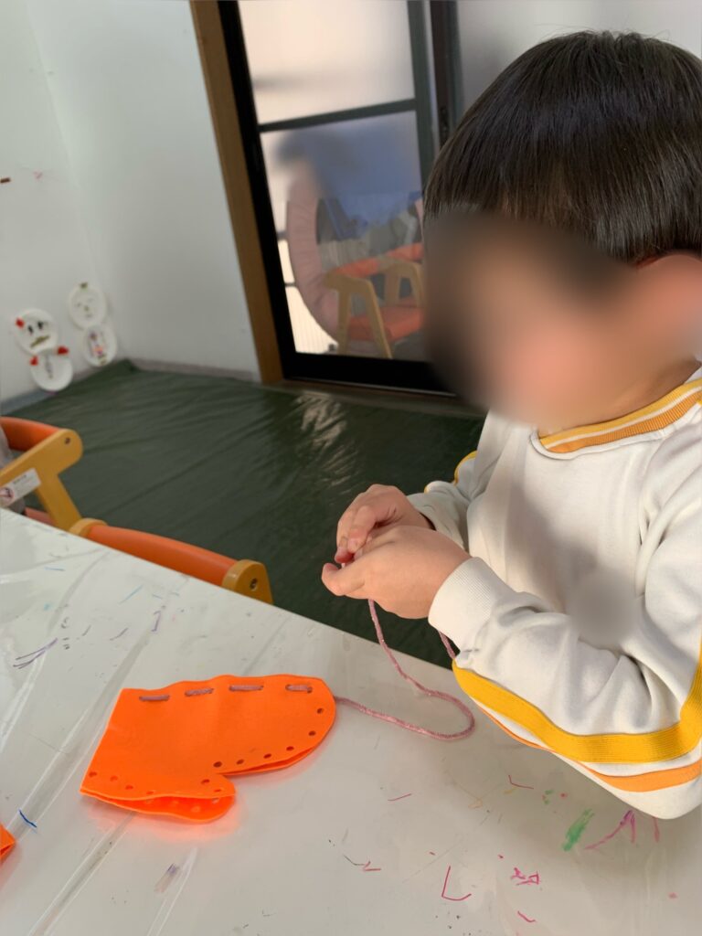 実際に針を使うことは難しいので、モールを針のかわりにして「縫う」ということをしました
