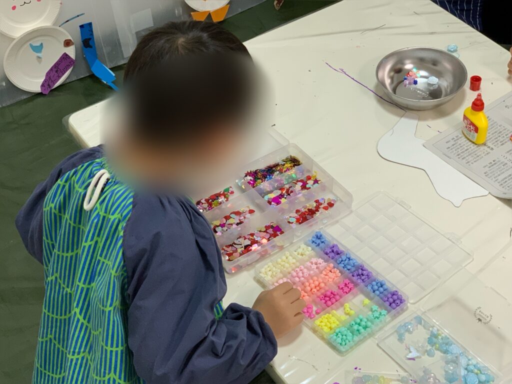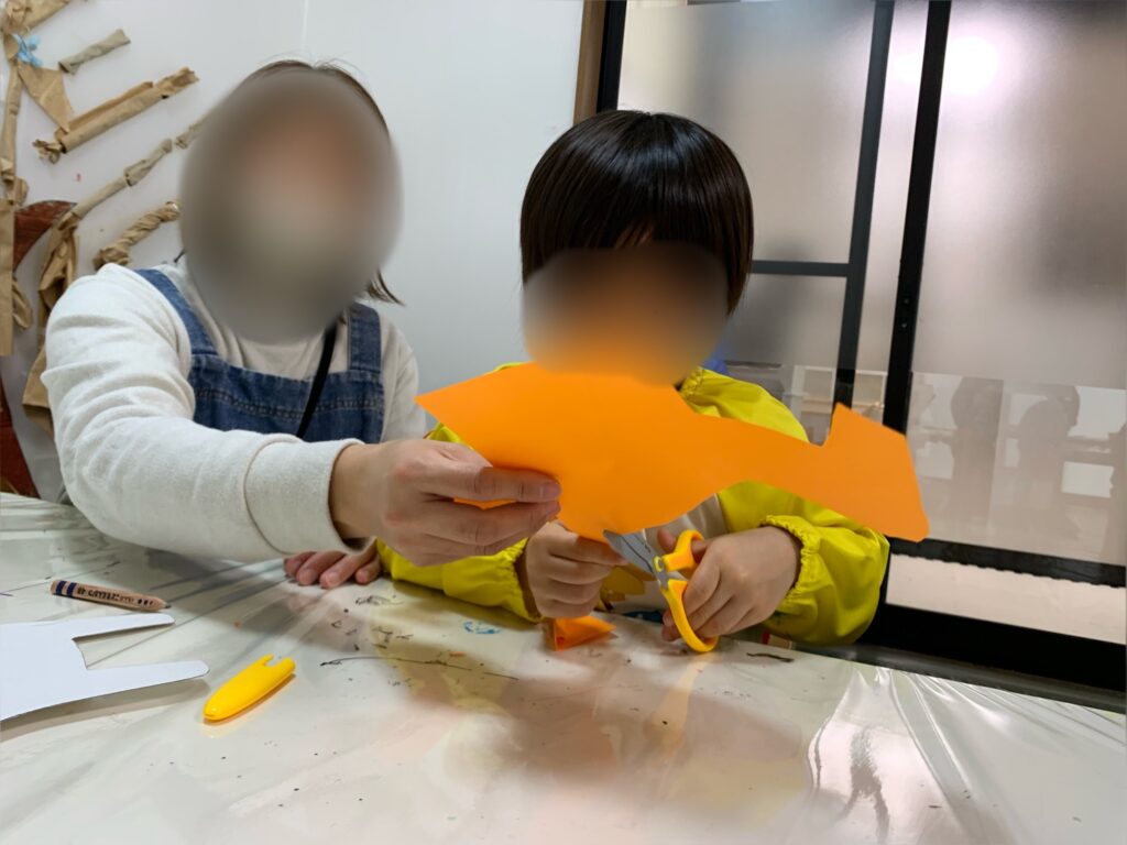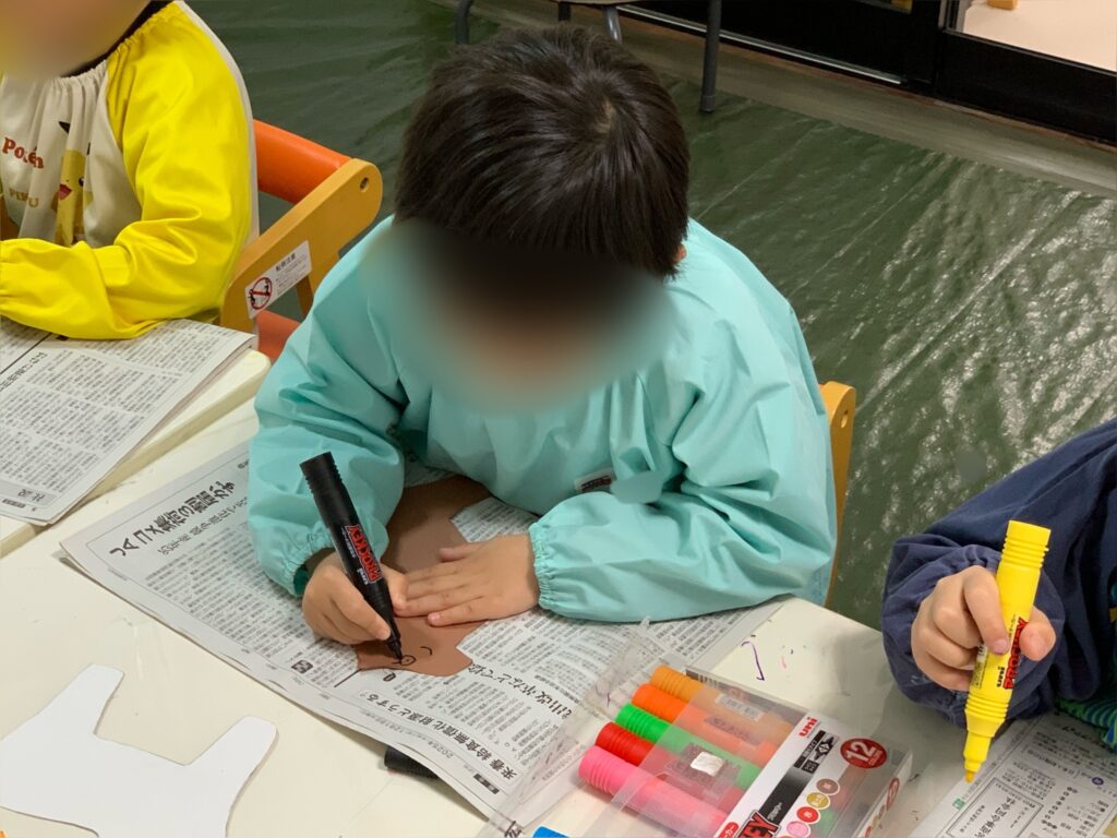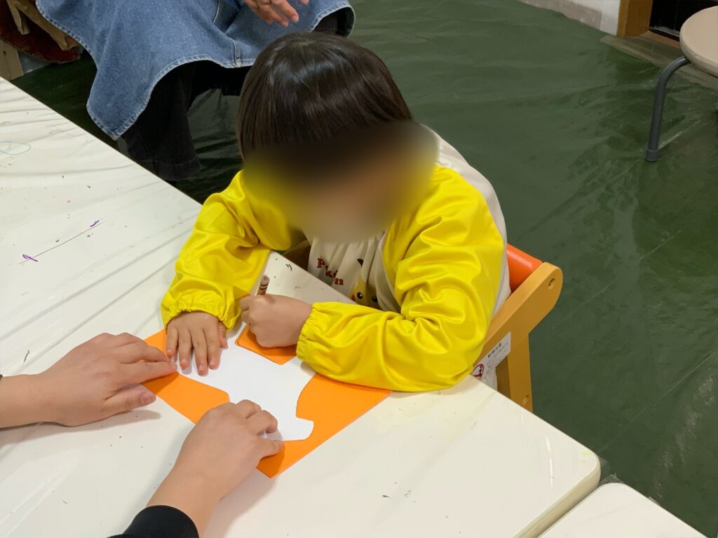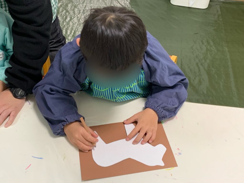 各々好きな色の画用紙を選び、型どりをし、はさみで切っていきます