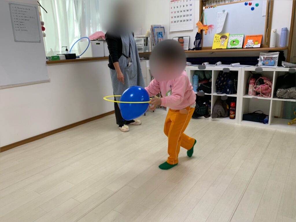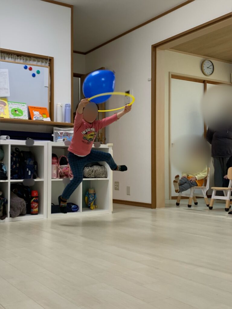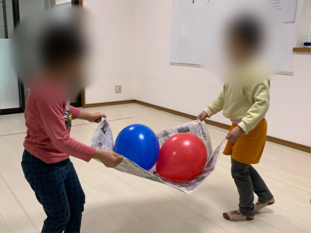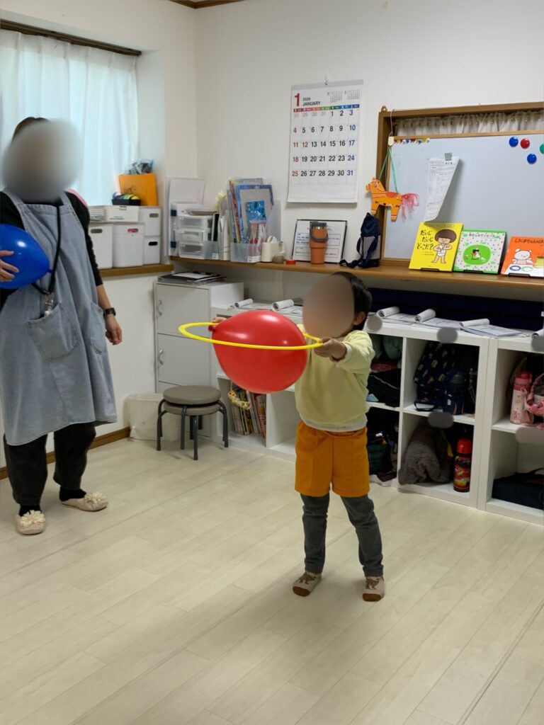 風船を目で追い、タイミングを合わせて手で打ったり掴んだり…動作により、目と手の連動が鍛えられます